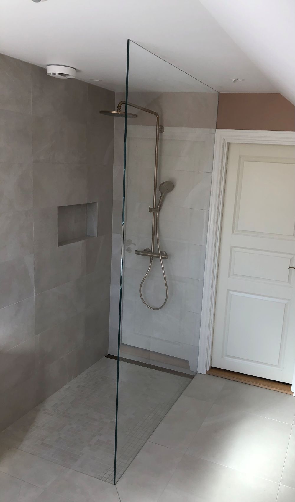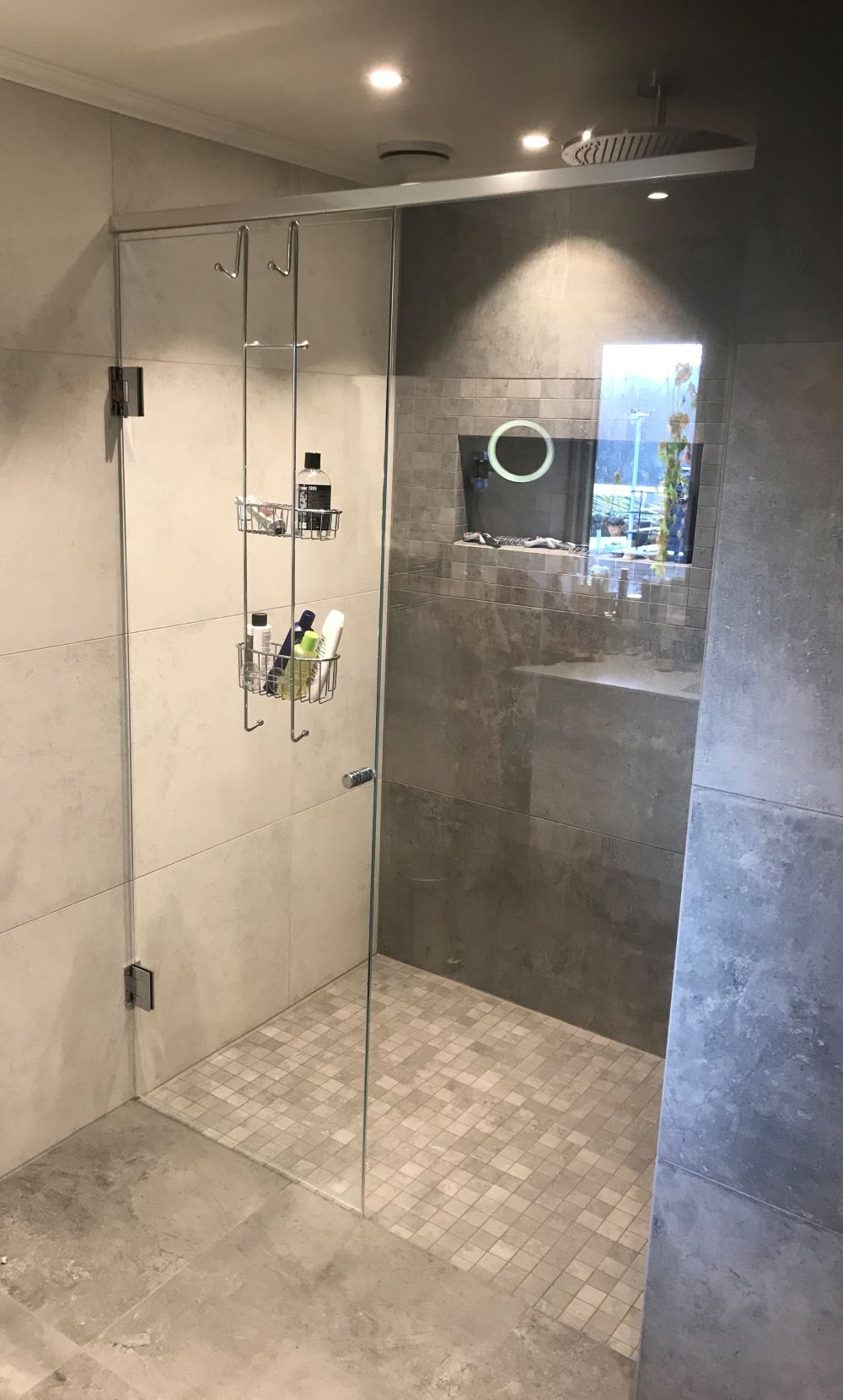 Skreddersydde dusjdører og dusjvegger i glass som gir badet et rent og moderne uttrykk.